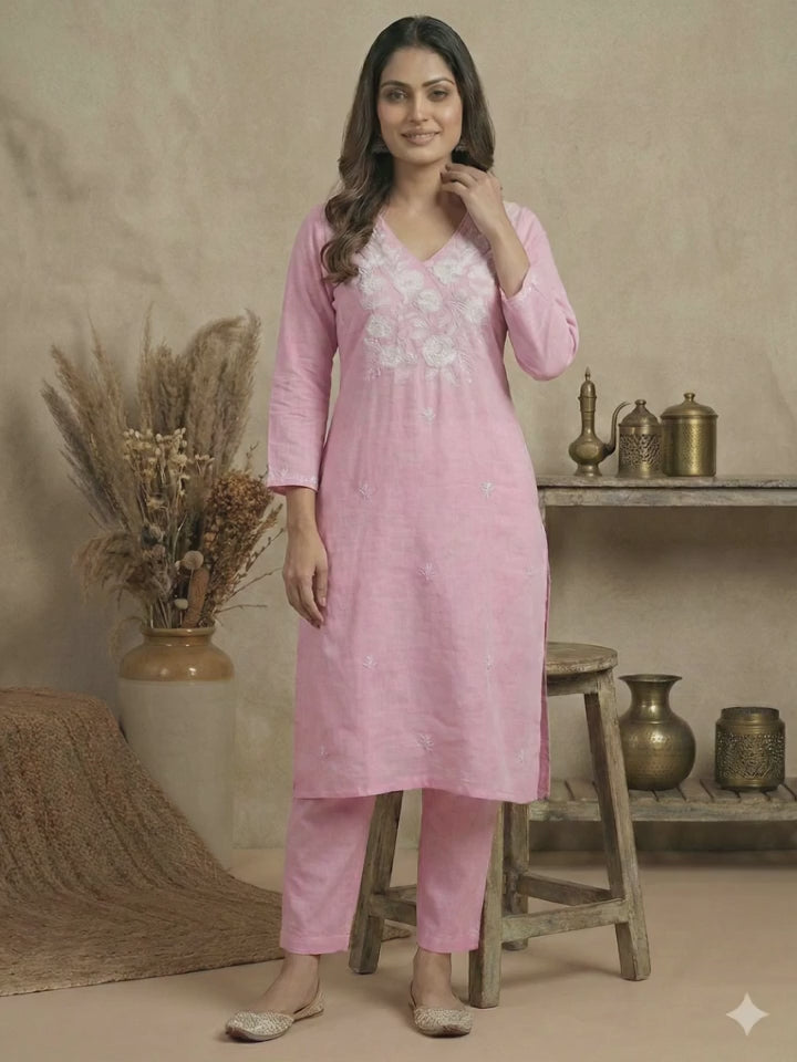 Crafted from pure rayon fabric, the kurti features beautiful Lakhnavi-style embroidery work on the neckline and body, giving it a graceful and premium ethnic look. It is paired with a comfortable heavy rayon pant, making it perfect for all-day wear.